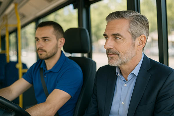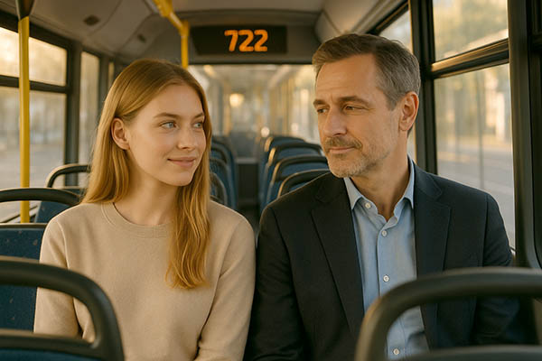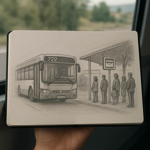Un día cualquiera. El 722 llegó puntual, como casi siempre. Él subió, saludó a Juan, el conductor, y buscó asiento. Observó el pasillo con calma, como quien no tiene prisa