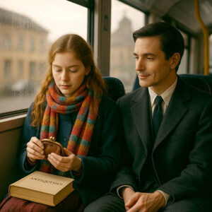 El autobús estaba a punto de cerrar puertas cuando ella subió. Una chica joven, de unos veinte años, bufanda desordenada, el pelo húmedo por la lluvia. Miró a su alrededor, nerviosa,